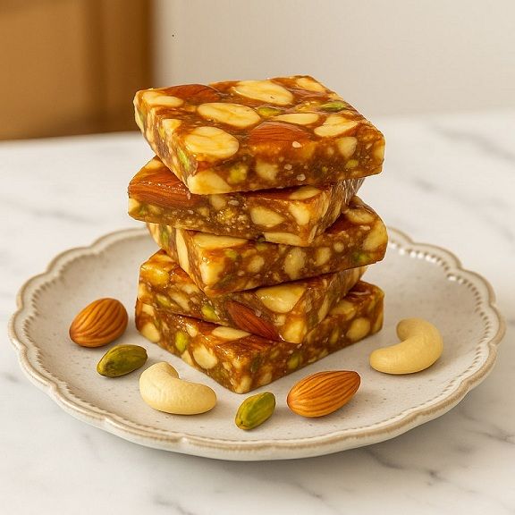 Our reputed vendors use premium almonds, pistachios, cashews, and sugar — blended perfectly to deliver a crunchy and rich texture.